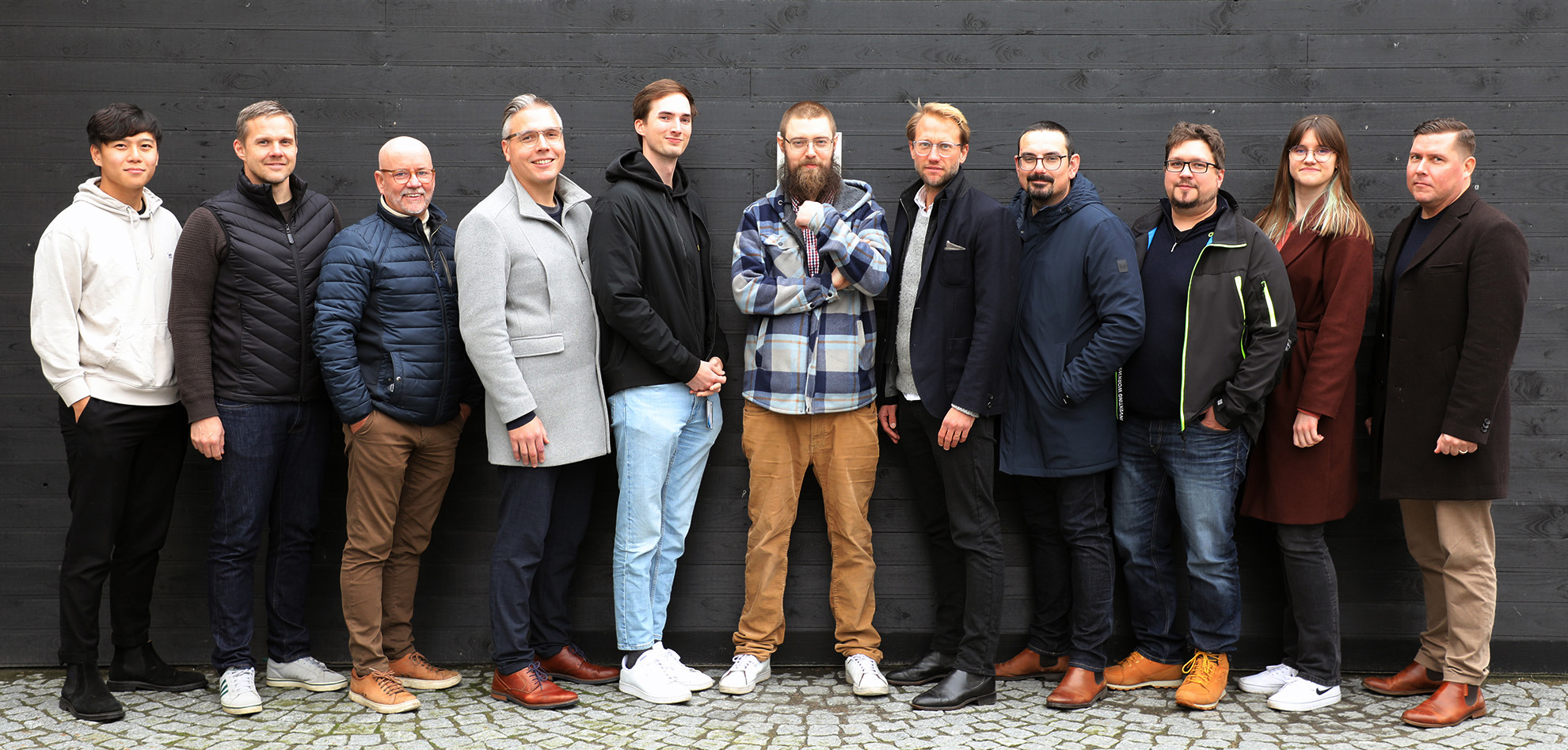 The Roxtec Digital Solutions team, from the left: Jonny Nguyen, Lars Noresten, Mats Åhman, Per Rovegård, Erik Rundberg, Robin Malkolmsson, Kristofer Hervius Eidelöf, Dino Opijac, Milton Karlsson, Paulina Bonnevier and Markus Eliasson.