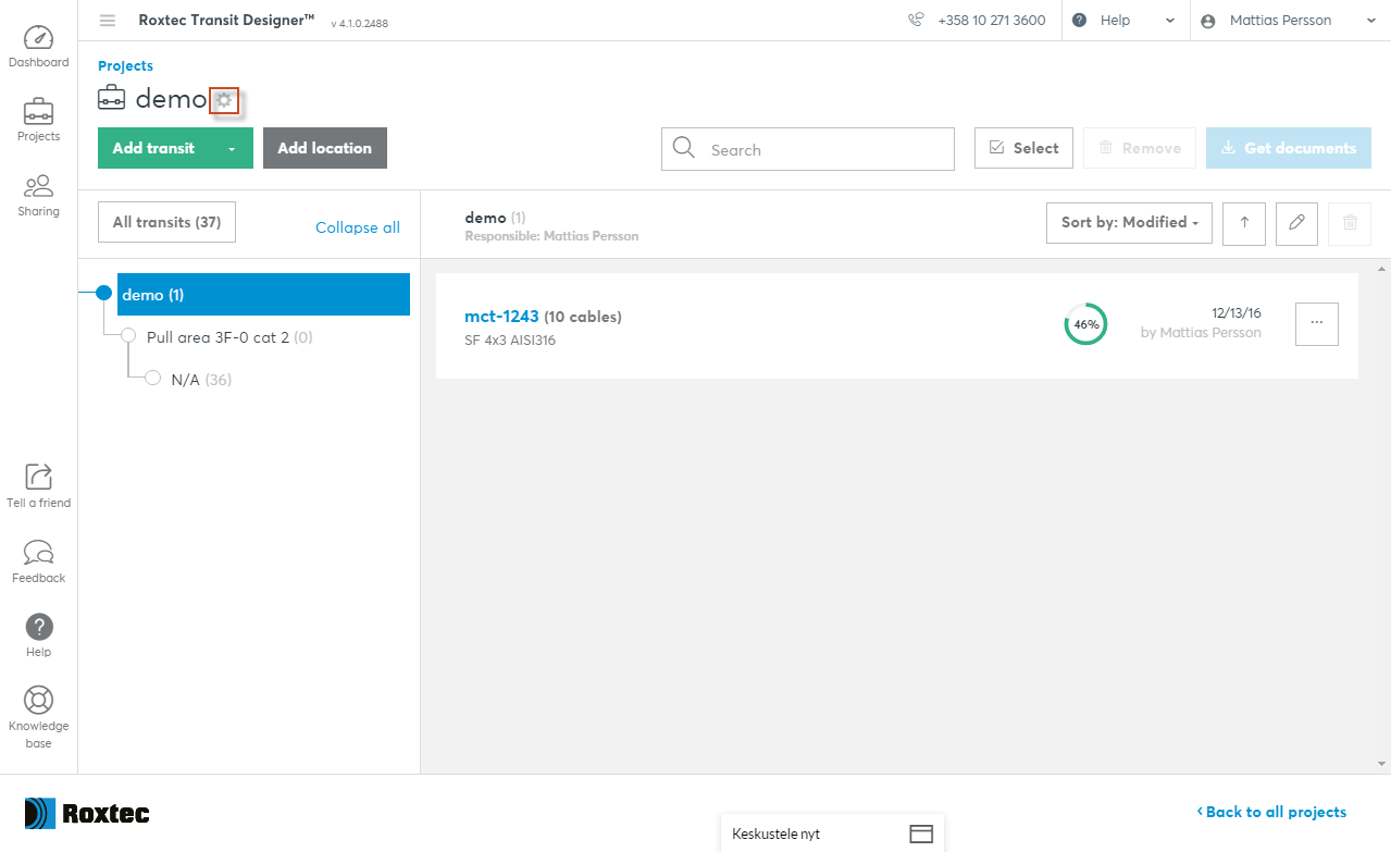 Você pode fazer seu próprio arquivo de backup off-line na seção de configurações do seu projeto. Para acessar a configuração do projeto, clique no ícone de engrenagem próximo ao nome do projeto.