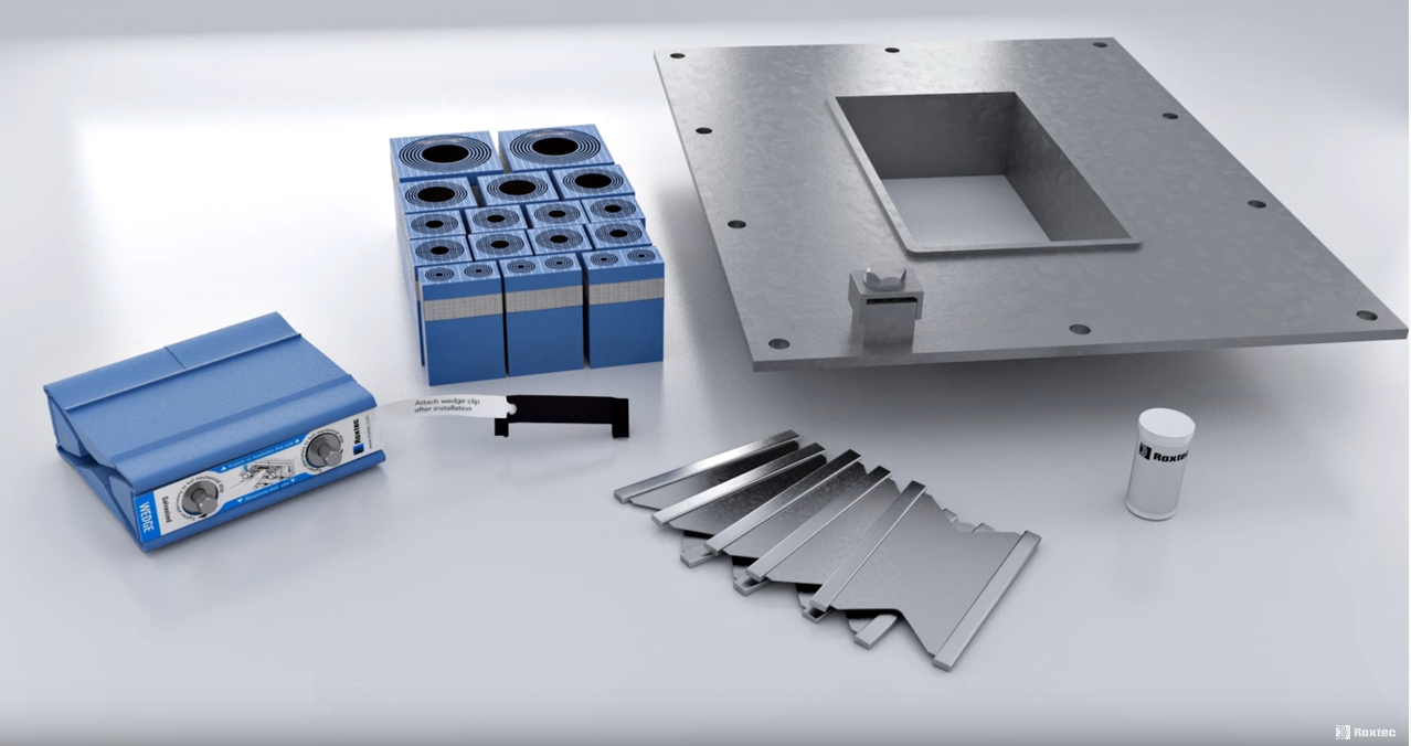 Rungon ja potentiaalintasausjärjestelmän välinen sähköyhteys on elintärkeä. Kehykseen asennettavat Roxtex BG™ ‑tiivistysmoduulit tiivistyvät kaapelien ja putkien ympärille. Armeerattuun kaapeliin tai metalliputkeen yhdistetty sisäänrakennettu punos varmistaa sähköisen yhteyden jatkuvuuden runkoon. Tämän jälkeen asennettava Roxtec Wedge ‑puristinyksikkö viimeistelee tiivistyksen puristamalla tiivisteet tiiviisti kiinni.