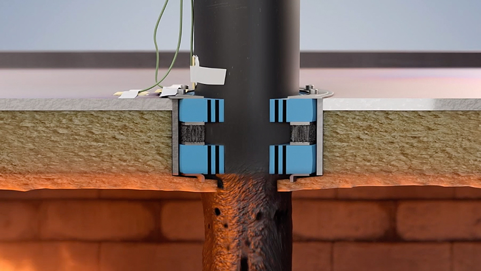Vea este vídeo de las instalaciones de pruebas de incendios de Roxtec. Experimente cómo el sello reacciona al calor de un incendio y forma un tapón protector para mantener la integridad original de la división cuando la tubería de plástico se ablanda, se derrite y desaparece.