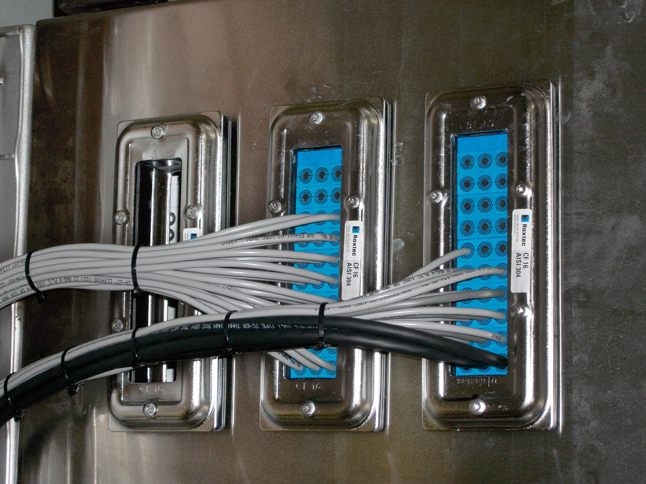 În mediile care necesită spălare dificilă, cum ar fi industria de prelucrare a alimentelor, precum și pentru vehiculele militare, basculante și alte echipamente rutiere grele și pentru teren accidentat, combinația de apă, substanțe chimice, presiuni și temperaturi ridicate poate fi fatală pentru sistemele electronice instalate. Acum puteți utiliza trecerea pentru mai multe cabluri Roxtec CF 16 AISI și etanșările Roxtec C RS T pentru cabluri individuale, pentru a asigura protecția certificată și împotriva apei la presiune înaltă și la temperaturi ridicate.