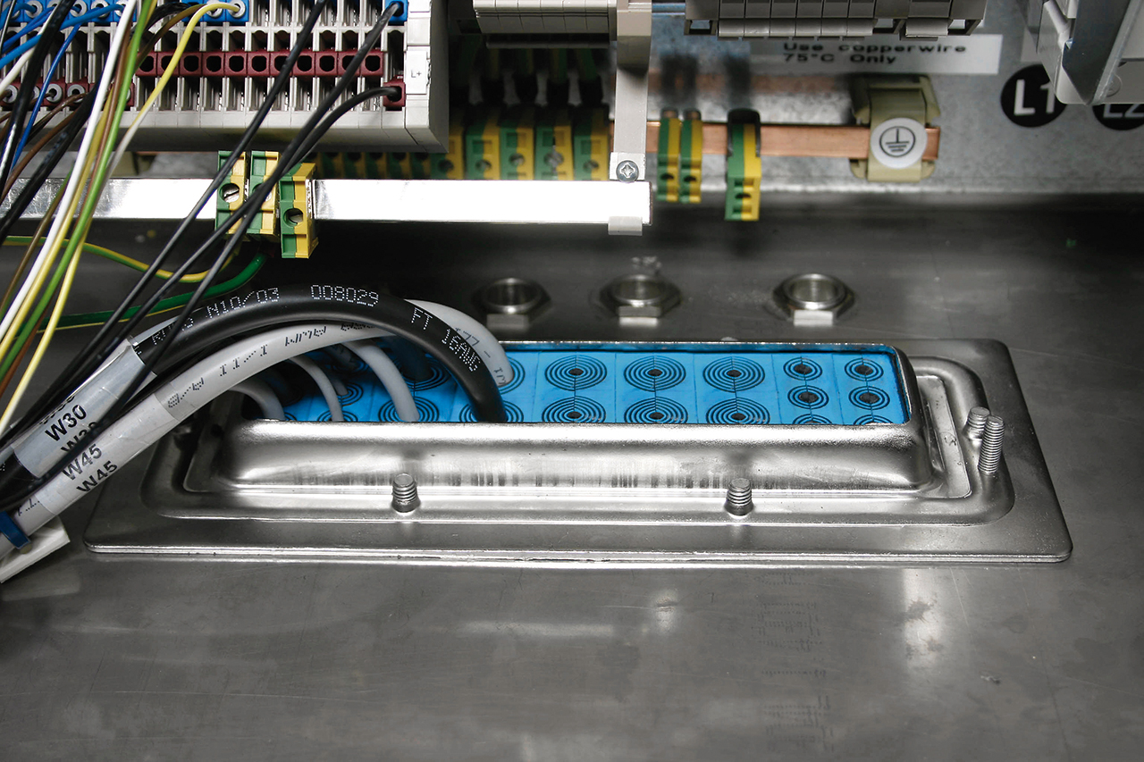 При разработке машин компания Haas-Meincke A/S ориентируется в первую очередь на высокую надежность производства и высокий уровень санитарии. Предыдущее решение с использованием кабельных сальников часто вызывало проблемы с санитарией из-за накопления мусора. Решение Roxtec имеет гладкую поверхность, которая не допускает проникновения влаги даже под высоким давлением.