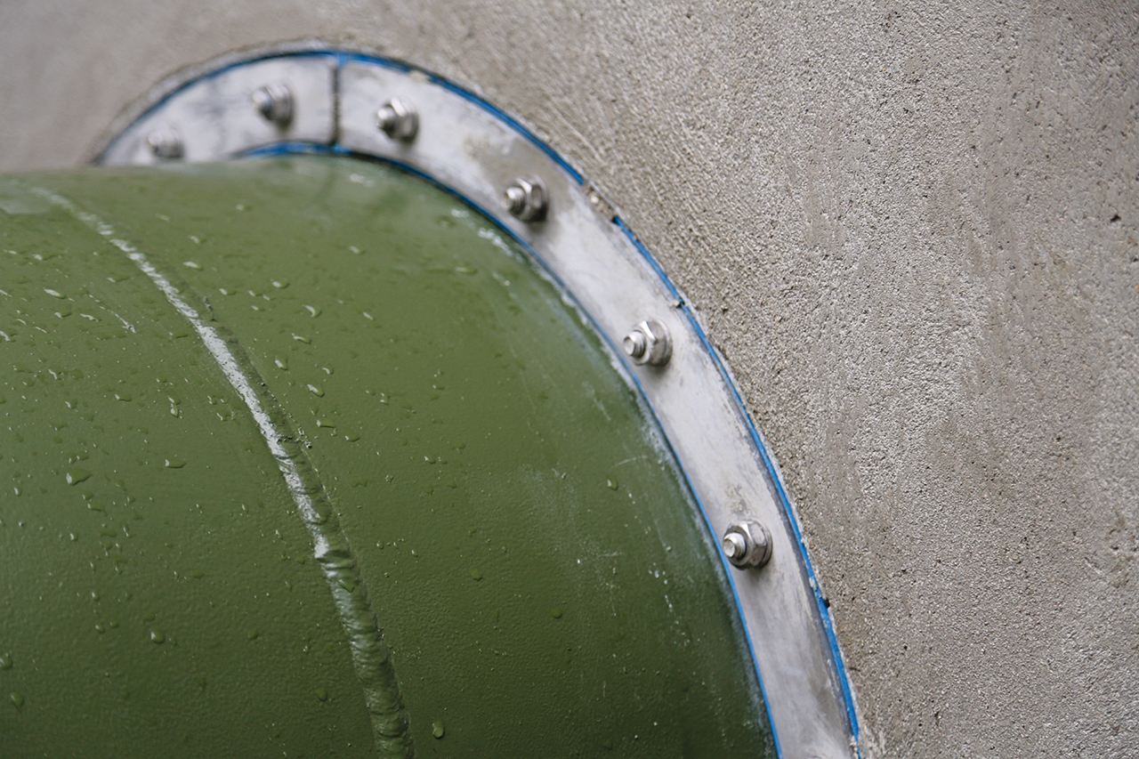 Roxtec seals were installed around the existing pipes with outer diameters of 319 and 612 mm, efficiently sealing the openings in the concrete walls.